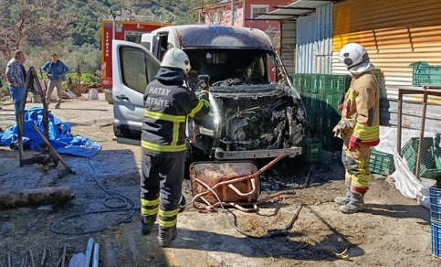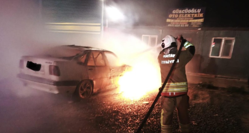 Arsuz’da park halindeki araç yandı